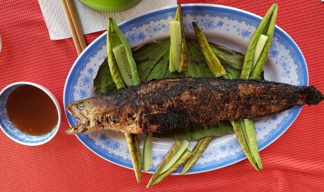 Cá lóc nướng cuốn lá sen non
